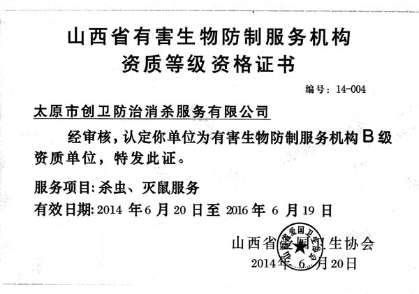 | 太原創(chuàng)衛(wèi)消殺服務(wù)有限公司與淘寶網(wǎng)店區(qū)別,有十五年的實(shí)地專業(yè)消殺經(jīng)驗(yàn),專業(yè)殺蟲(chóng)公司,采用進(jìn)口工程專用消殺藥品,先作業(yè),后付費(fèi),打消您的后顧之憂。 |